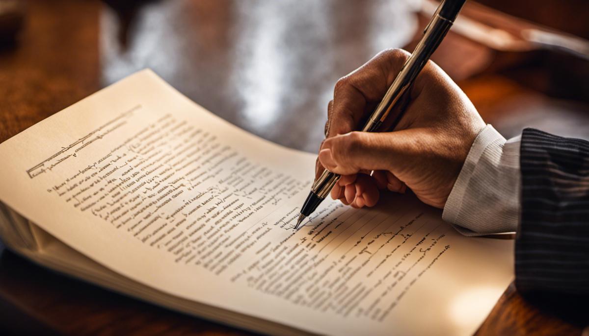 Image of a person writing on a document, illustrating the iterative document writing process